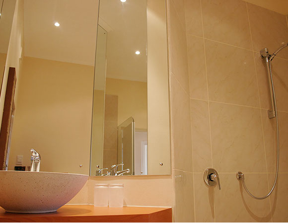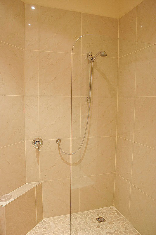 One bathroom with shower and bath